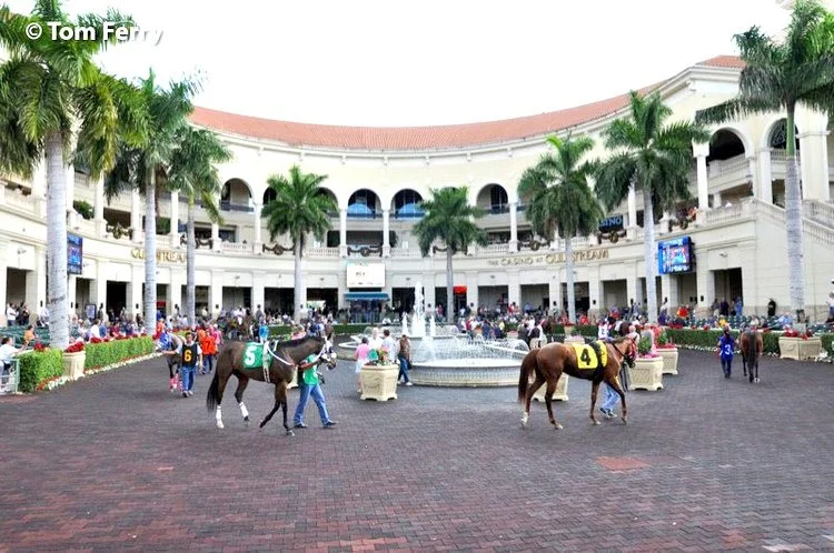 Horses parade in the Gulfstream Park paddock. Photo by Tom Ferry.