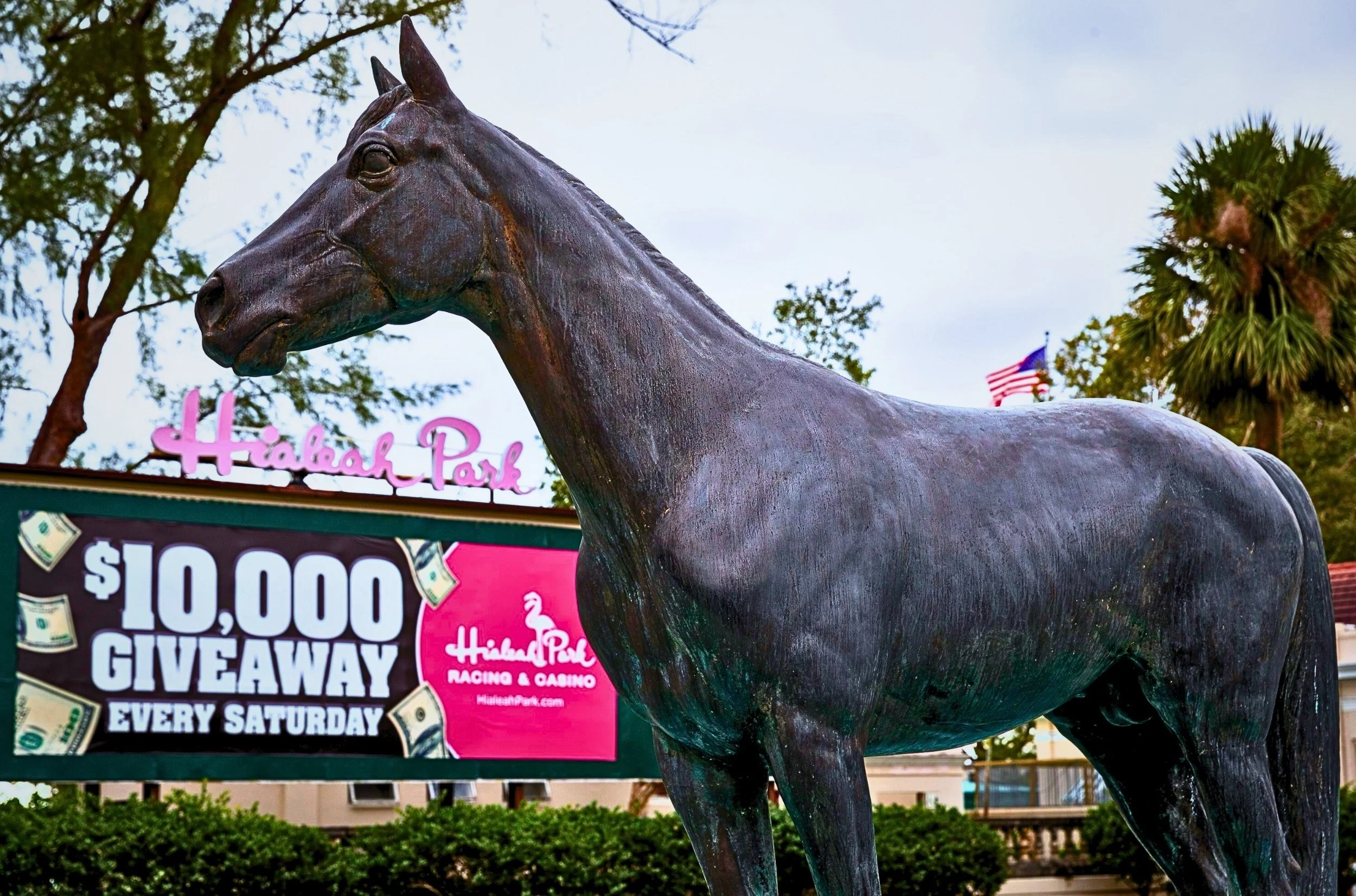 The statue of 1948 Triple Crown winner Citation at Hialeah Park Casino. Photo by Steve Heuertz.